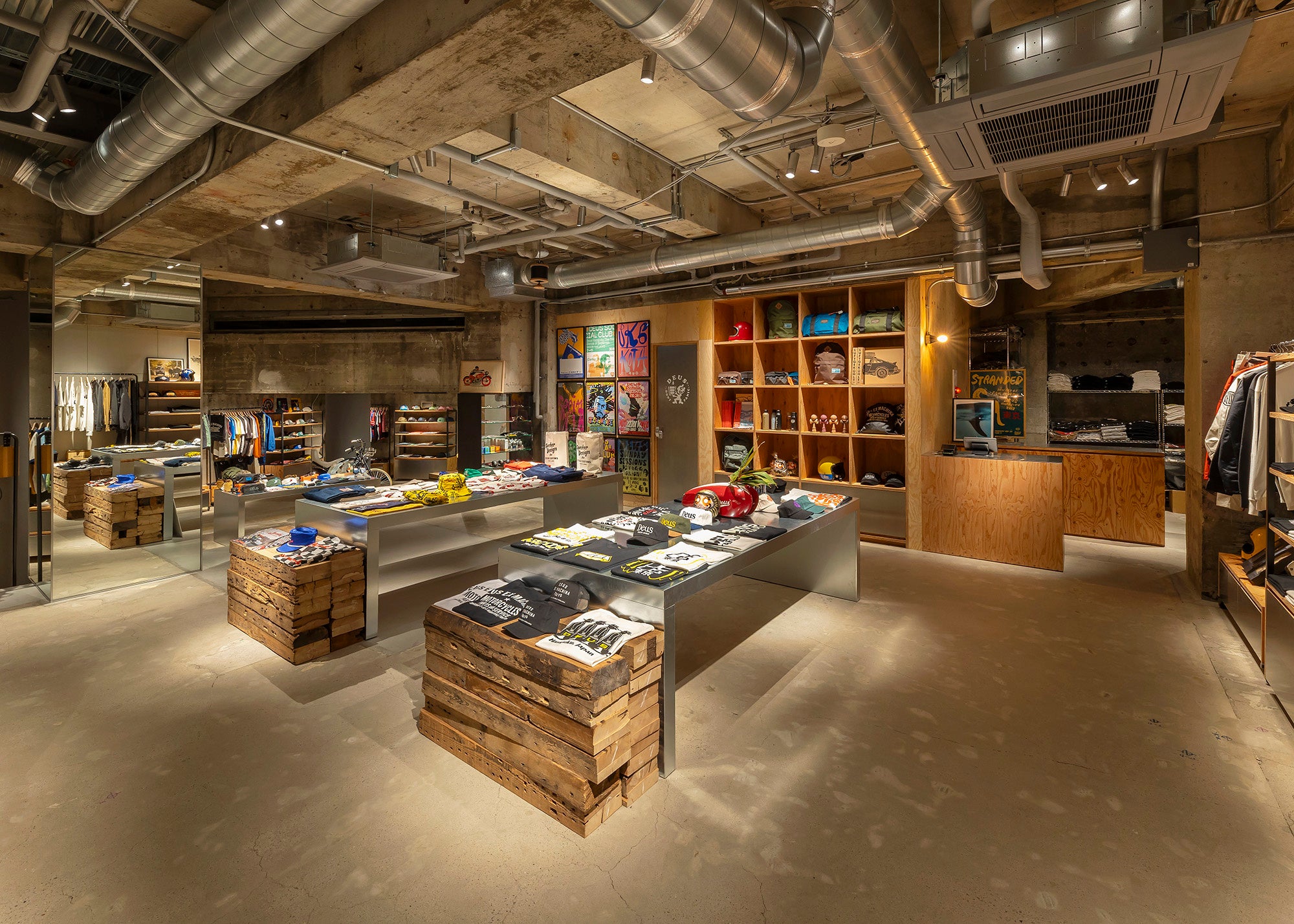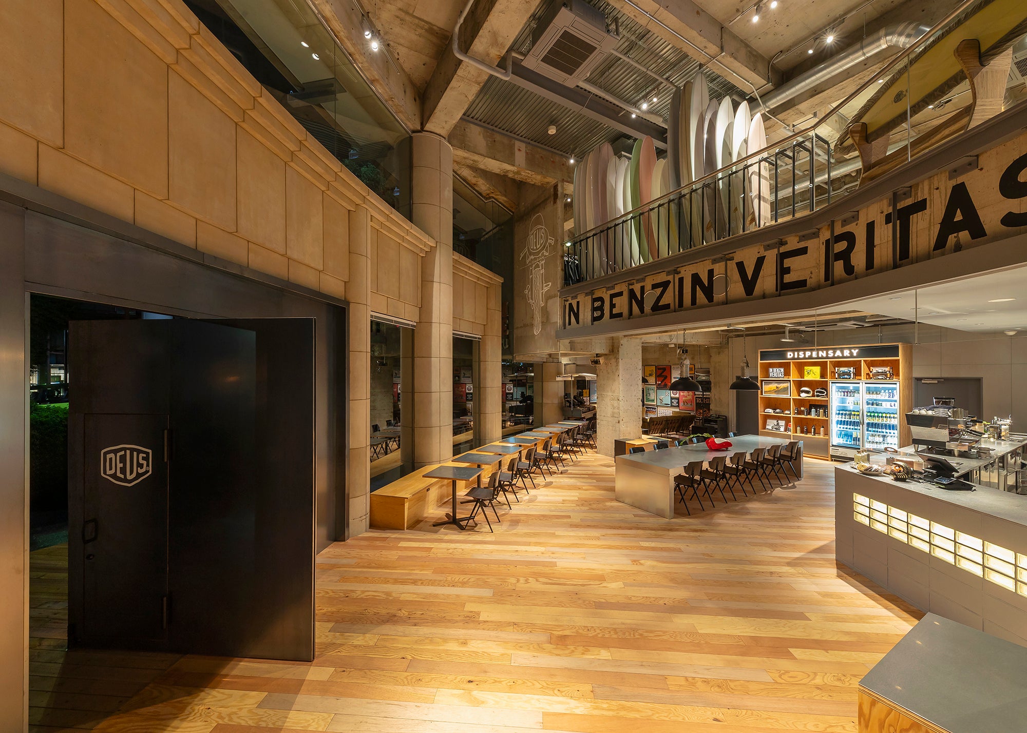 デウス・エクス・マキナ原宿は、2025年5月に東京・原宿にオープンしたデウスブランドのフラッグシップストア。バイク、サーフ、スノー、アート、音楽、フードなどさまざまなカルチャーからインスピレーションを受けたアパレルを展開するほか、カフェスペースではオリジナルメニューのドリンクやフードを楽しむことができます。