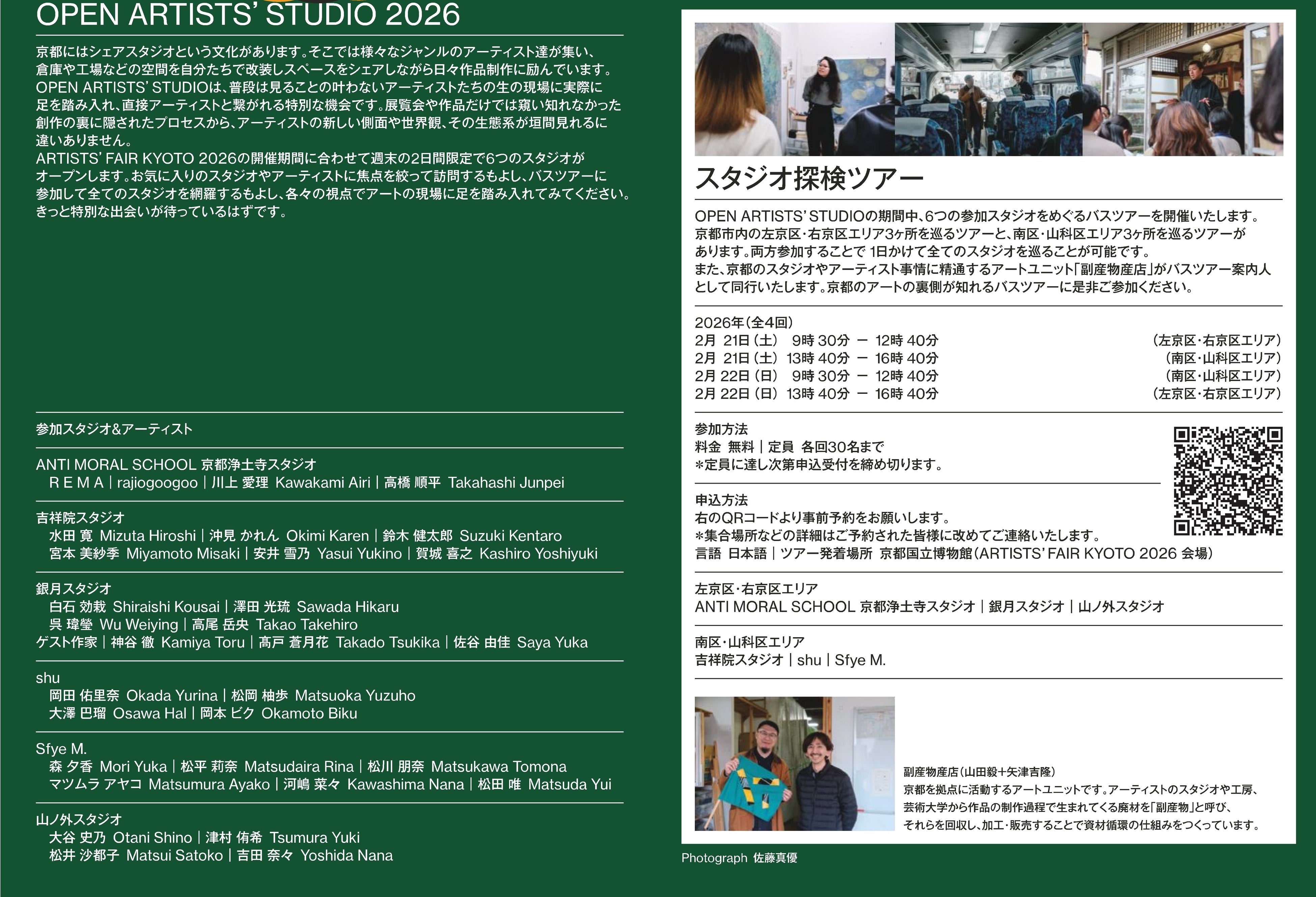 ■京都府では、若手アーティストのシェアスタジオを公開する「OPEN ARTISTS’ STUDIO 2026」を2月21、22日に開催します。