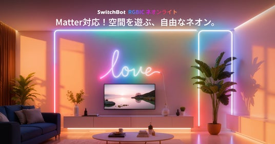 IoT・スマートホーム事業を展開する「IoTデバイスNo.1ブランド(※2022年11月 家電Biz調べ)」のSWITCHBOT株式会社(本社:東京都渋谷区)は、自由自在に曲げて形を作れるインテリア照明「RGBICネオンライト」の予約販売を2025年12月25日(木)よりAmazon公式ストア、SwitchBot公式サイト、ヤフーSWITCHBOT公式ショップで開始いたします。本製品は、Matterに対応し、Appleのホームアプリをはじめとする多様なプラットフォームでの操作が可能。RGBIC技術が実現する滑らかなグラデーション効果、ネオンライトの鮮やかで均一な光と、自由に曲げられる造形力で、あなたの部屋を「光のアート空間」へと変貌させます。