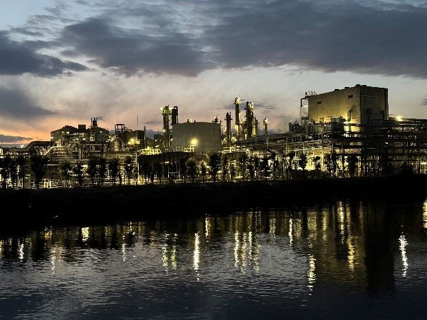 入道樋門公園(ポリプラスチックス(株)富士工場)富士市で一番きらびやかな工場。放水路の川面に映る灯りもきれい。
