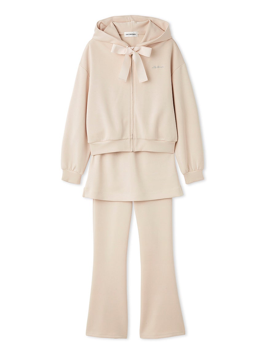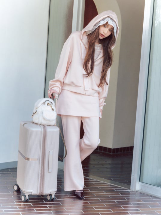 フーディーとレイヤードパンツがセットになった、特別感たっぷりのセットアップ。