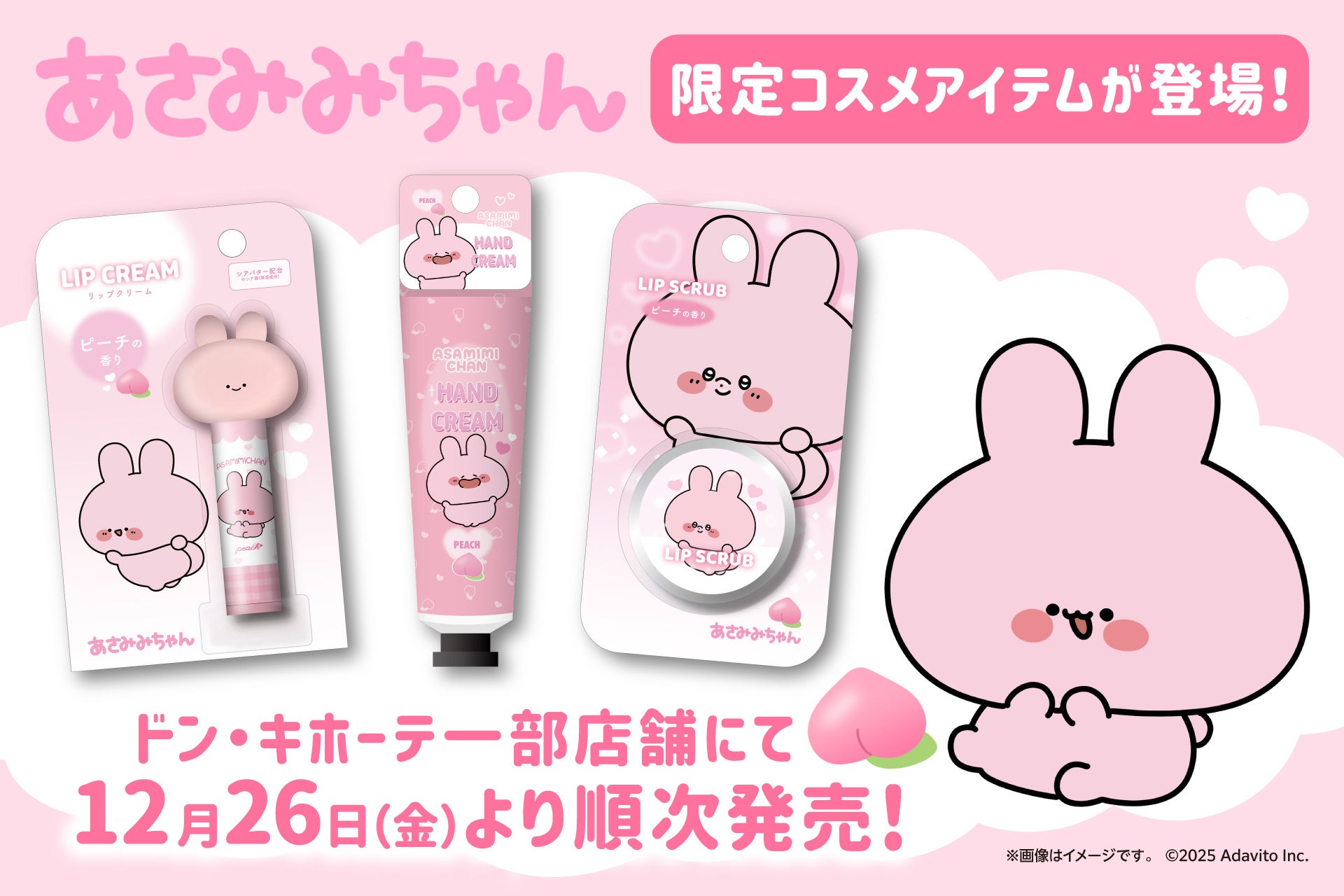 2025年12月26日(金)から「ドン・キホーテ」の一部店舗にて、『あさみみちゃん』限定描き下ろしイラストを使用したコスメ雑貨を販売します。