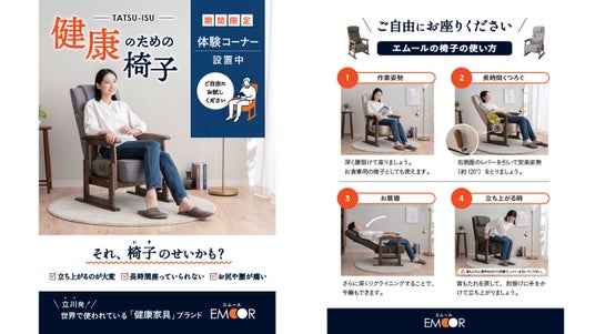 株式会社エムール(本社:東京都立川市、代表取締役:高橋幸司)は、地域との連携活動の一環として、みずほ銀行立川支店(東京都立川市)内に「健康のために椅子体験コーナー」を設置いたしました。