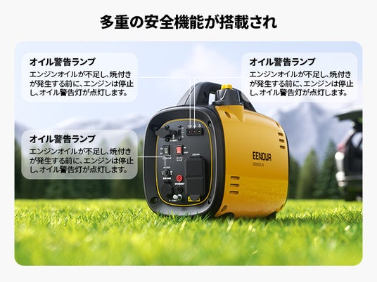 ・多重安全保護機能:オイル量低下保護、過熱保護、過負荷保護など