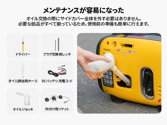 オイル交換の際に側面カバー全体を取り外す必要がなく、日常のメンテナンスをより効率的かつ短時間で行えます。