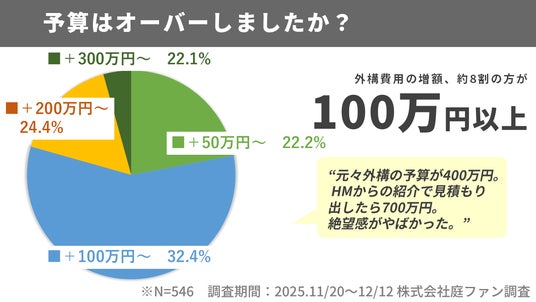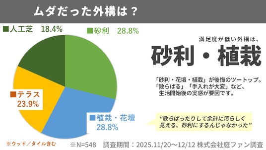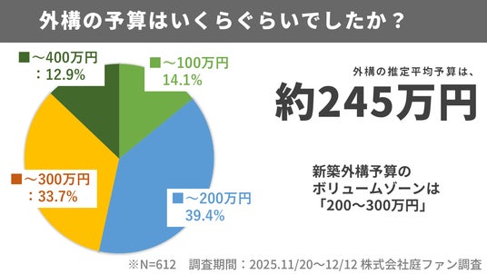 外構・エクステリアの専門情報を発信するメディア「庭ファン」を運営する、株式会社庭ファン(本社:神戸市西区、代表取締役:山田 臣次)は、新築外構を経験したフォロワーを対象に、外構費用・満足度・後悔ポイントに関するアンケート調査を実施しました。