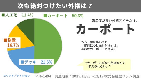 もう一度新築しても「絶対につけたい外構」、半数がカーポート