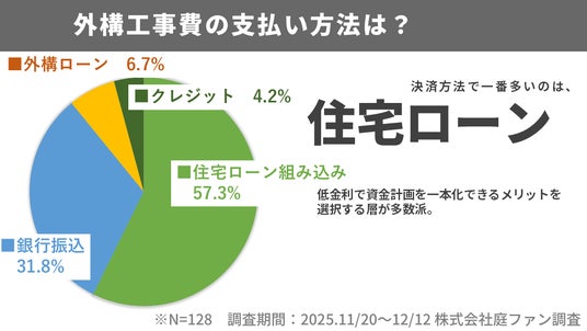 外構費の支払い方法については、「住宅ローンに組み込んだ」が57.3%と最も多い結果となりました。