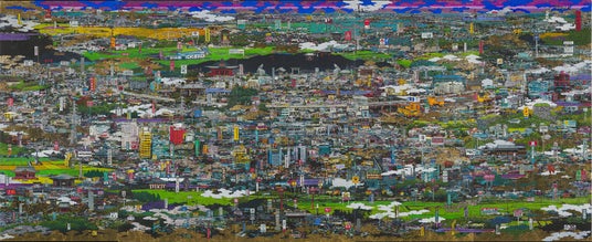 6.藤原泰佑(1988-)《太田市街図》2017年、アクリル、和紙、顔料、箔、パネル 186.0×455.0cm