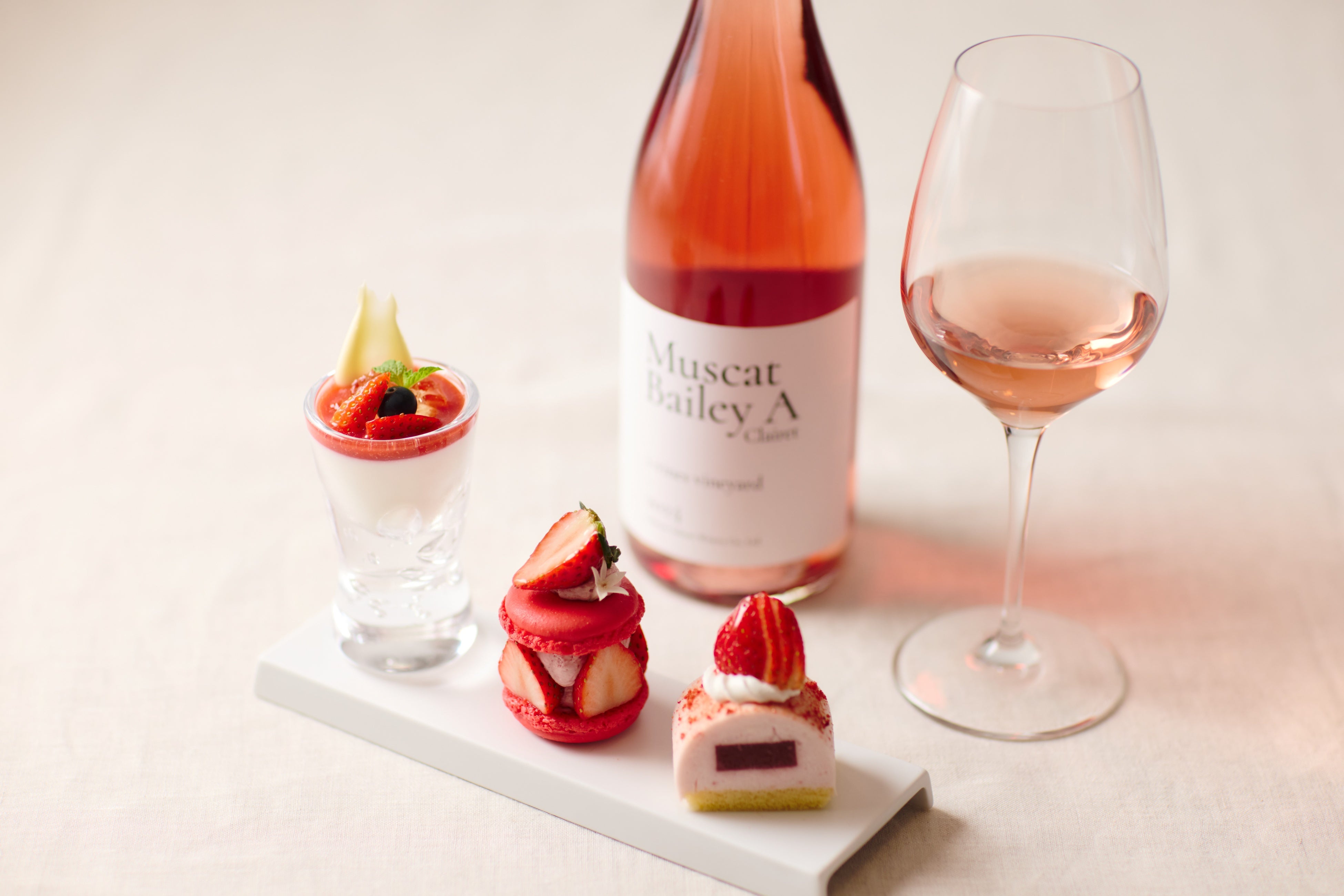 ~今年は山梨県を代表する葡萄の品種「マスカット・ベーリーA」のロゼワインと合わせて堪能する苺のスイーツやドリンクが新登場~