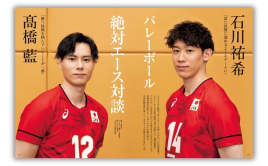 日本代表において揺るぎない存在である二人、石川祐希選手と高橋 藍選手。特別対談では、ロサンゼルス五輪に向かう代表活動を前に2大エースが秘める今の思い、さらに「仲がいい」と言い合う二人だからこそ知るプライベートな一面も教えていただきました。