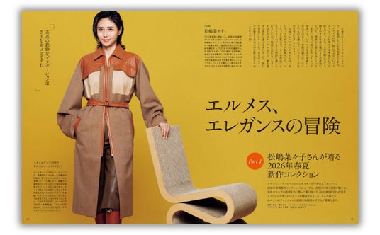 ナデージュ・ヴァンへ=シビュルスキーが手がける「エルメス」2026年春夏新作コレクションのショーでは、自由な精神を持つ女性をイメージした数々のスタイルが披露されました。そんな新たなエルメスのファッションに、俳優の松嶋菜々子さんが挑戦します。