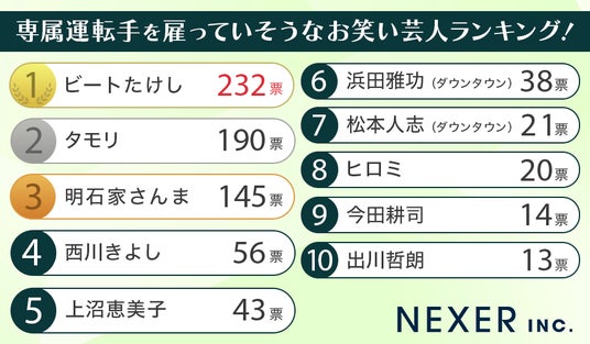 株式会社NEXER・専属運転手を雇っていそうなお笑い芸人に関する調査
