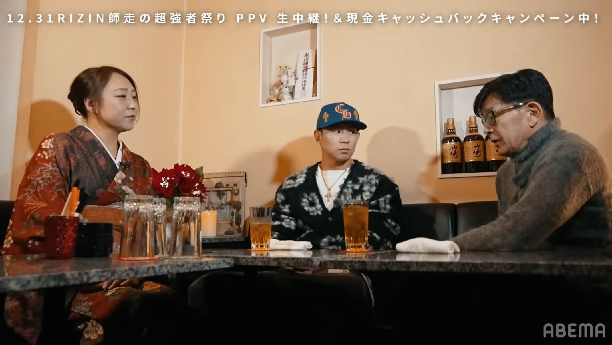 また、練馬の居酒屋ではMMAの師匠・長南亮氏と合流。長南氏は、怪我を抱えながらも本番でミラクルを起こすYA-MAN選手の異常な勝負強さを「アドレナリンの働きがおかしい」と評し、大晦日の斎藤戦についても「安心して自分らしく突っ走ってくれたら。技術とかそこは俺がバックアップするから。自分の思うままやってくれたら」と、エールを送りました。