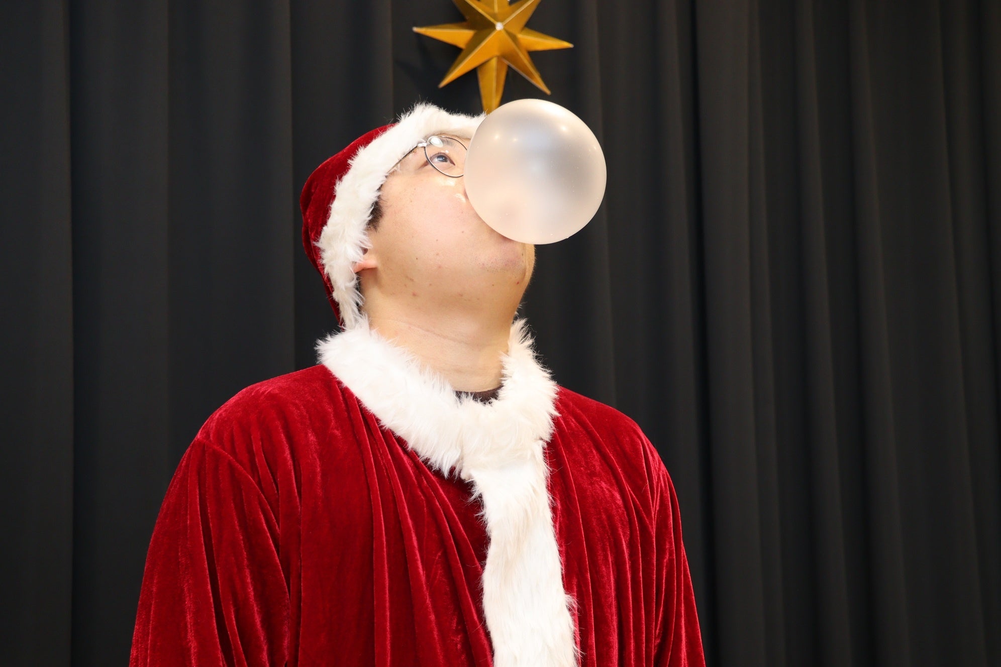 このたび、本取り組みを受け、2025年12月22日(月)に徳山めぐみ幼稚園(山口県周南市 園長:村田 佳奈)にて「フーセンガムトレーニング クリスマス会」を実施しました。当日はロッテのフーセンガム名人がサンタクロースに扮し、園児にフーセンガムの噛み方やふくらませ方をレクチャー、フーセンガムを使用した技を披露しました。