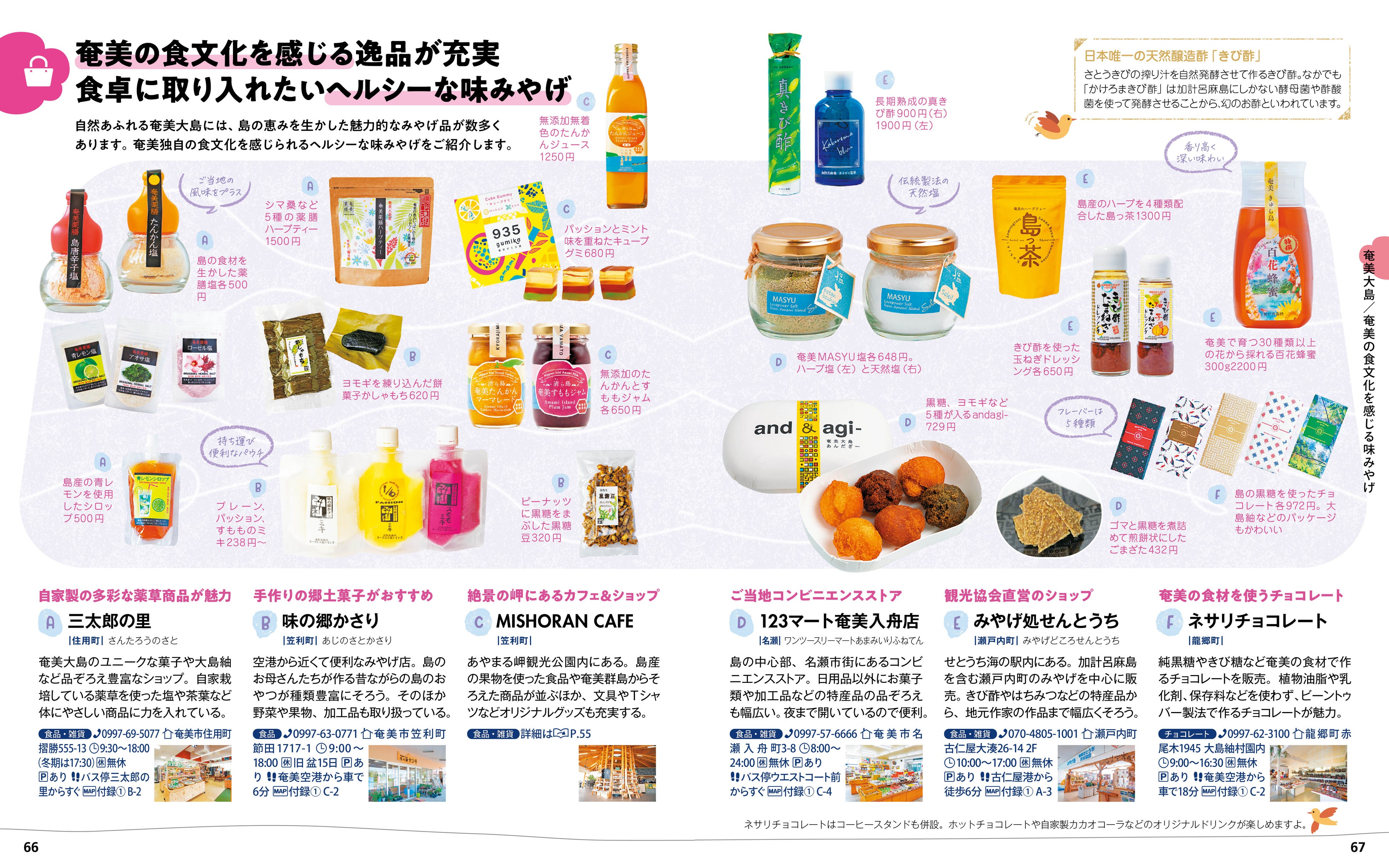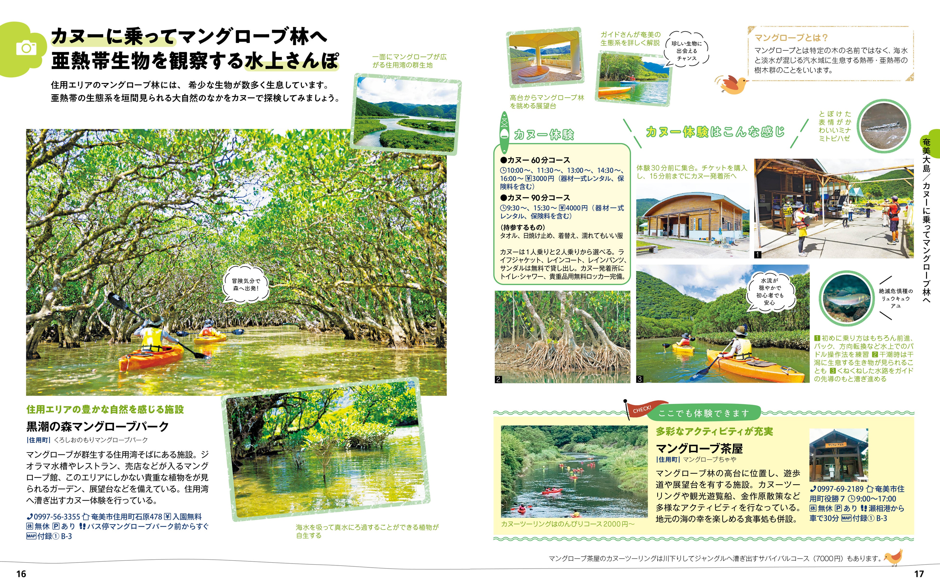 || 世界自然遺産の森と海を満喫する「奄美大島・加計呂麻島」巻頭特集では、奄美大島の大自然をクローズアップ。「カヌーに乗ってマングローブ林へ」や、「金作原(きんさくばる)を探検するツアー」など、ダイナミックな自然を体感できるアクティビティを紹介します。また、奄美大島から船で約20分の加計呂麻島へ足を延ばし、隠れ家カフェや絶景ドライブを楽しむプランも掲載しています。