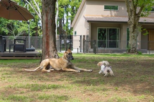 広大なプライベートドッグランでのびのびと遊び、あたたかい室内でくつろぐ──
