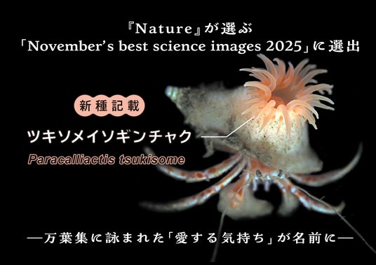 選出された映像は、吉川准教授らが2025年10月に新種として発表したツキソメイソギンチャクの映像です。このイソギンチャクは、深海にてヤドカリが使っている貝殻の上で暮らしており、そのヤドカリの「宿」となる構造物を作るという驚くべき代謝能力を持っています。さらには、自然下ではアカモントゲヤドカリが使っている貝殻の上からしか発見されておらず、特定のヤドカリととても強い共生関係を築いています。