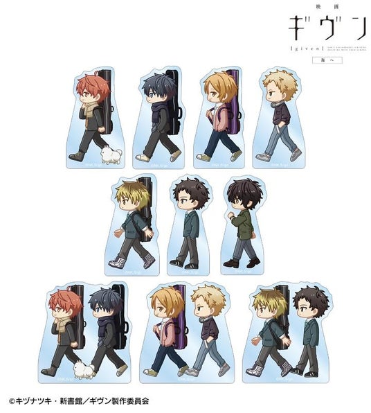 佐藤 真冬、上ノ山 立夏、中山 春樹、梶 秋彦、鹿島 柊、八木 玄純、村田 雨月が歩いているちびキャラを新たに描き起こし、ミニフォト用アクリルスタンドに仕上げました。