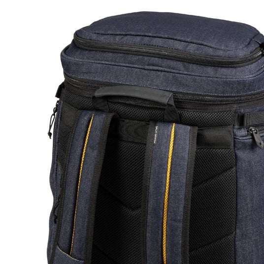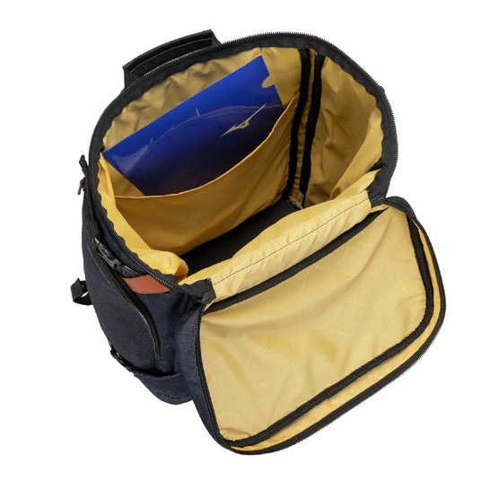 約53Lの大容量サイズのバックパックで、メイン収納はバッグ上部のファスナーだけでなく、サイドのファスナーからもアクセスできる仕様になっています。バックパックを前に抱えたときにもメイン収納が開きやすいように、背中側からファスナーを開けられるのも特長の一つです。