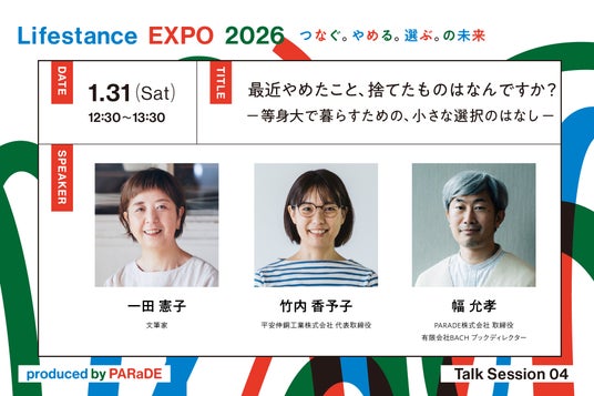 突っ張り棒を主力とするインテリア開発メーカーである平安伸銅工業株式会社(本社:大阪府大阪市、代表取締役: ⽵内 香予子)は、2026年1月30日(金)~2月1日(日)の3日間で開催される「Lifestance EXPO 2026」に出展します。また、2026年1月31日(土)開催されるトークセッション「最近やめたこと、捨てたものはなんですか?ー等身大で暮らすための、小さな選択のはなしー」に、弊社代表取締役の竹内香予子が登壇します。