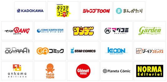 KADOKAWA、TATESC COMICS、ジャンプTOON、まんがたり、マンガBANG、コミック アース・スター、少年サンデー、マグコミ、月刊コミックガーデン、コミックオギャー!!、GAコミック、Star Comics、Ki-oon、シーモアコミックス編集部、Ankama Editions、TACOTOON、Glenat Manga、Planeta Comic、Norma Editorial