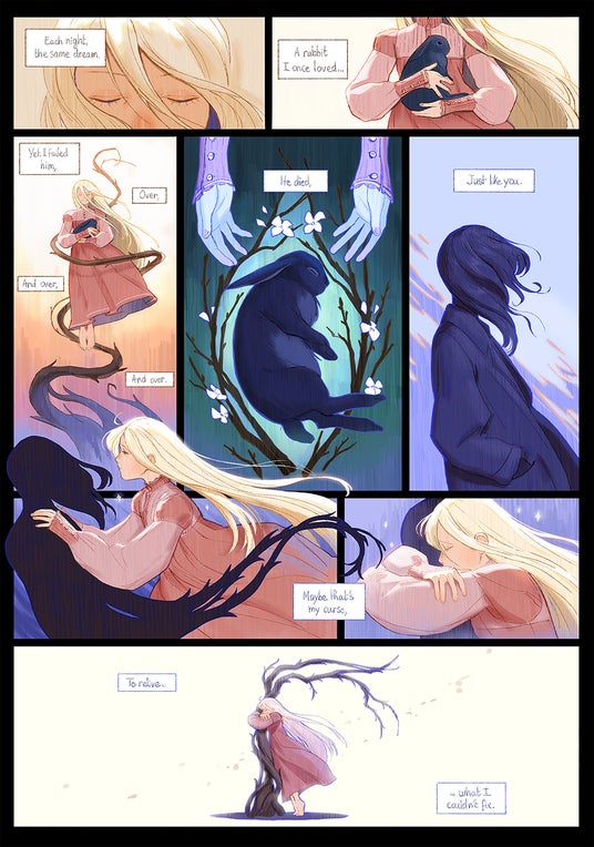 講評:ひと目で惹き込まれる素晴らしい作風です。特に色使いが印象的で、主要人物には柔らかく温かみのあるトーンを、特定の要素には、力強く冷たくより暗い色合いが用いられています。このコントラストが、作品のストーリーの展開と感情の重みを際立たせています。(Mirka Andolfo 氏)