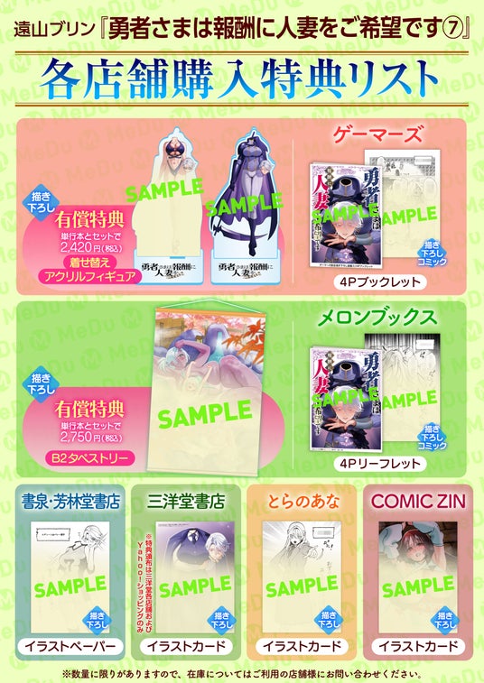 株式会社ジーオーティー(本社:東京都港区、代表取締役:吉永敦仁)はMeDu COMICS レーベルより2025年12月25日にコミックス『勇者さまは報酬に人妻をご希望です(7)』(著:遠山ブリン)を発売いたします。