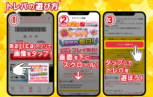サイバーステップホールディングス株式会社の連結子会社であるトレバ株式会社(本社:東京都杉並区、代表取締役社長:堀家 昌貴)は、オンラインクレーンゲーム「トレバ」において、株式会社パン・パシフィック・インターナショナルホールディングスが提供する電子マネー「majica(マジカ)アプリ」とのコラボレーション施策を、2025年12月25日(木)15:00より実施することをお知らせいたします。