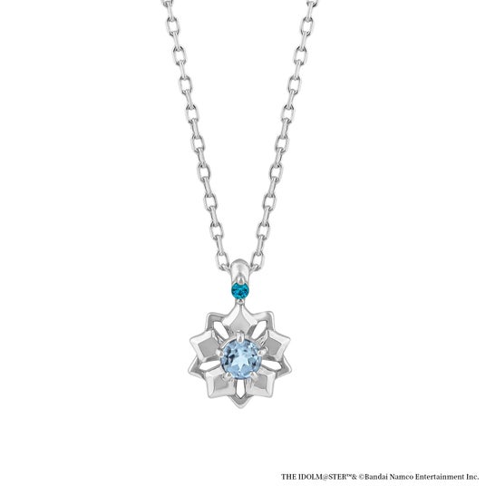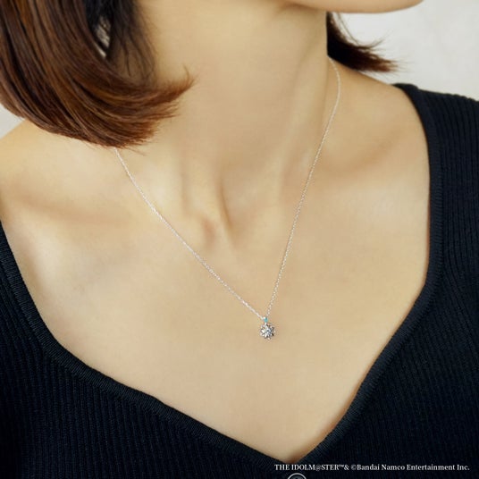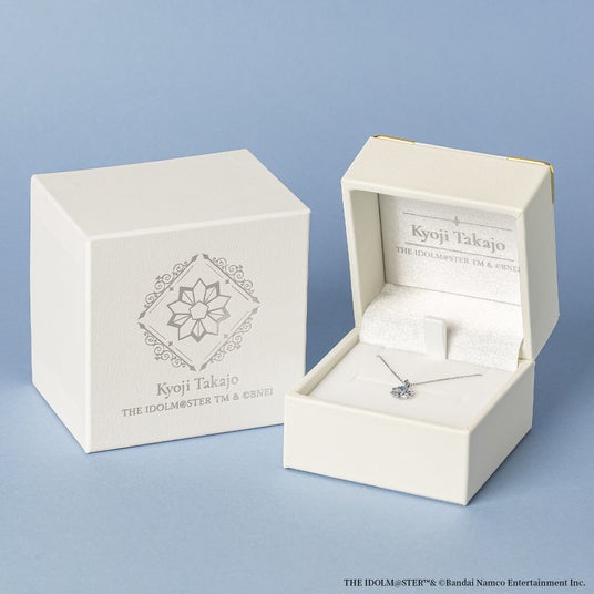 イラストで着けている首元の装飾をモチーフに、繊細なシルエットと2種類のブルーのストーンを使用し、鷹城恭二をイメージしたネックレスを作り上げました。優しい透明感と深い輝きで、鷹城恭二の落ち着きと芯の強さを表現。自らの力で未来をつかもうとする、その内に秘めた情熱と、端正な佇まいをイメージしています。身につけるたびに、彼のように凛とした気持ちになれるネックレスは、デイリーに使える本格的なジュエリーです。