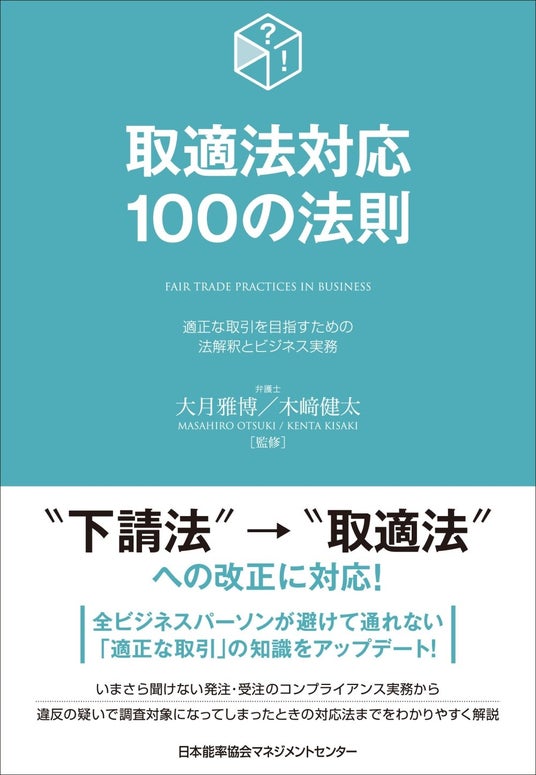 株式会社日本能率協会マネジメントセンター(代表取締役社長:張 士洛、東京都中央区、以下JMAM〔ジェイマム〕)は、書籍『取適法対応100の法則』を2025年12月25日(木)全国の書店、ネット書店にて発売します。