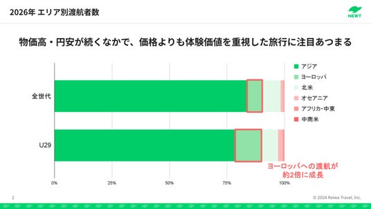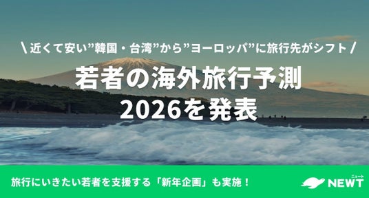 かしこい、おトク、旅行アプリ『NEWT(ニュート)』を運営する株式会社令和トラベル(本社:東京都渋谷区、代表取締役社長:篠塚 孝哉)は、NEWTにおける予約データをもとに「若者の海外旅行予測2026」を発表します。