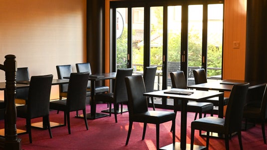 嵐山の緑を眺めながらゆったりお食事をすることができる