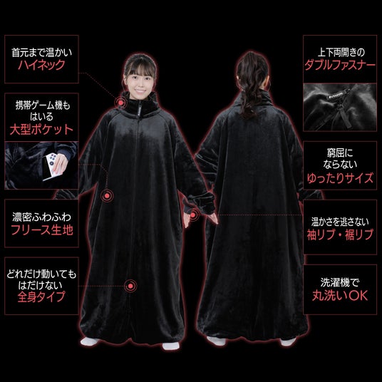 はだけない着る毛布(M-BK・L-BL・XL-BK)