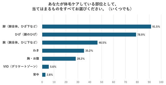 成人男性の間で一般化しつつある体毛ケアは、中高生男子においても浸透していることが明らかになりました。体毛ケアの実施率は全体の74.8%(n=103)にのぼり、そのうち「脚の毛」のケアは91.5%(n=103)と、最も高い結果となりました。また、体育や部活時に日焼け止めを塗る中高生男子は64.2%(n=288)と多く、理由として「日焼けはパフォーマンスにも影響するから」と回答した層が15.1%(n=185名)存在し、スポーツシーンの日焼けが集中力を削ったり、体力消耗につながるという実感から、日焼け対策をパフォーマンスケアの一環として捉える傾向もみられました。