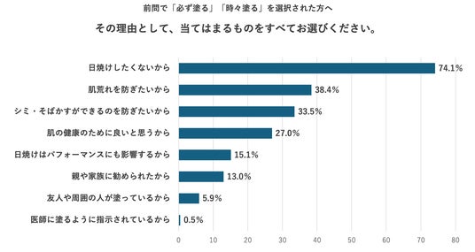 ・さらに、「日焼けはパフォーマンスにも影響するから」という声も一定の割合で存在しており、一部ではスポーツ時のコンディション管理の一環として日焼けを捉える認識が広がり始めていることが考えられます。
