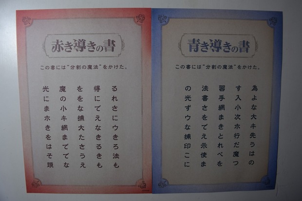 これらには分割の魔法がかけられているとあります。そこで、元に戻すために赤、青、赤、青の順で読んでみましょう。