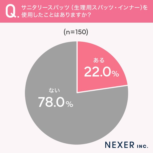 40代以下の女性150名に対して、サニタリースパッツ(生理用スパッツ・インナー)の使用経験を調査しました。