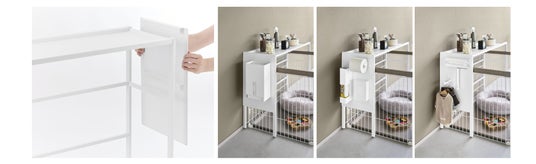 「ケージ上収納ラック」に別売のスチールプレートを取り付けることで、マグネット付きの収納シリーズを組み合わせることができます。トイレットペーパーやトイレシーツなどのトイレ用品やクリーナーなどケージ周りの必需品を便利に収納できます。