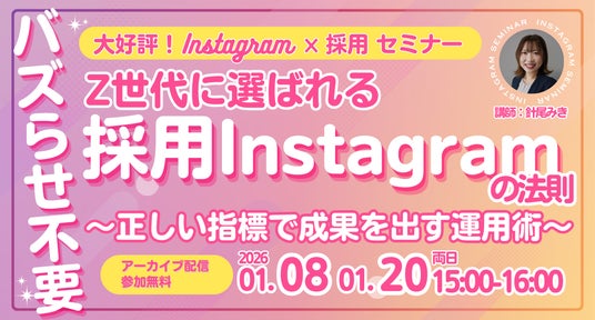 本セミナーでは、採用成果に直結する「本当に見るべき指標」をお伝えします。Instagramアルゴリズムの仕組みを理解し、正しい指標で運用することで、モチベーションを維持しながら継続でき、結果的に採用成功へと繋がります。