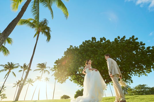 挙式前または挙式後にゲストと一緒にカピオラニ公園もしくはアラモアナビーチ&パークにて撮影を行います。