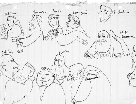 [完全版]は、エーコ自身が下書きした文書館の図面、ホルヘ・ダ・ブルゴス等、個性的な修道士たちのスケッチのほか、1980年の初版刊行後しばらくして刊行されたエーコ自身による「『薔薇の名前』覚書」(かつて、而立書房から別の訳者によって訳出されていましたものの河島英昭・河島思朗訳)を収録し、本文中に初版刊行後の折々に加えられた訂正を反映したものになっています。