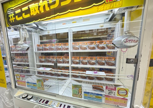 今回のエブリデイスーパーは、店舗改装によって新設された専用コーナーです。105台のクレーンゲームを210ブースに分け、約180種類の食品をラインナップすることで、