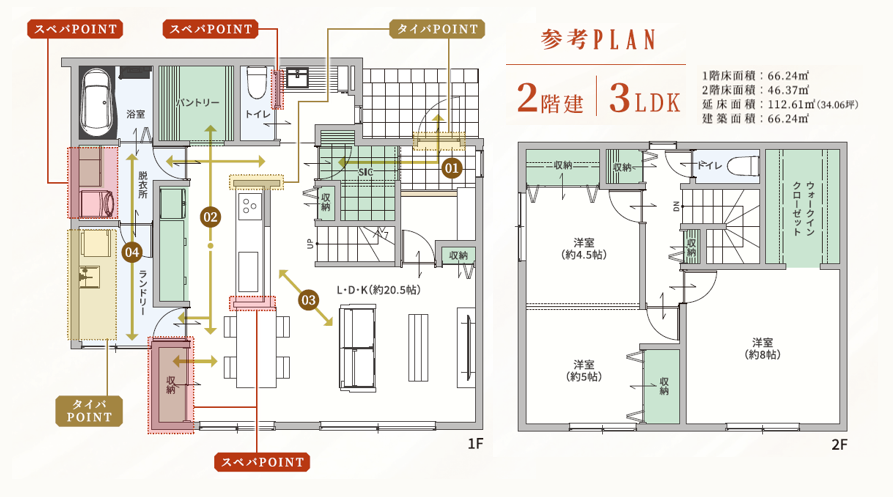 各所にタイパ提案・スぺパ提案を盛り込んだ新「AQ Grand」参考プラン(2階建て3LDK/延床面積112.61平方メートル )