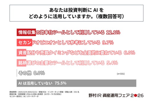 投資経験5年以上の個人投資家の75%以上が投資判断にAIを活用していない