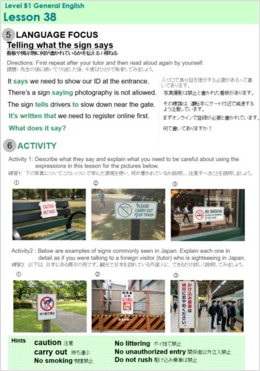 A1/A2/B1コースの後半(Lesson51~75)を、まとまった量の英語を話す「説明する力」がつく内容に刷新しました。写真や図版をふんだんに使い、英語の看板の説明や料理の手順など、実用的なシーンでのアクティビティを大幅に強化しています。