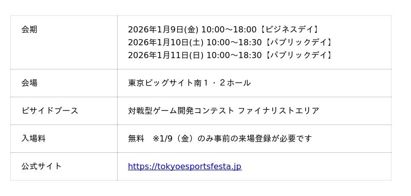 「東京eスポーツフェスタ2026」は、eスポーツの普及と関連産業の振興を目的としたイベントです。eスポーツ競技大会や関連産業展示会に加え、ビジネスセミナーからファミリーで楽しめる体験・学習企画まで、誰もが楽しめる企画を多数用意しています。
