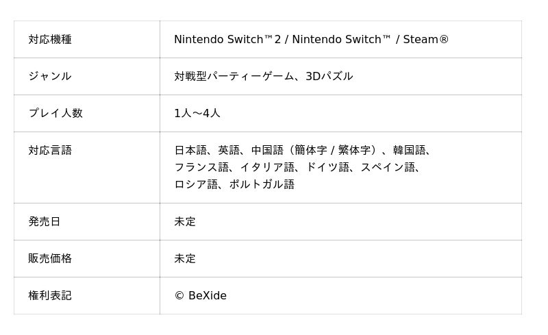 タイトルに「パーティ」とある通り、ご家族やご友人、みんなでワイワイ楽しめる内容となっております。そんな大人気パズルゲームが、いよいよNintendo Switch(TM)2 / Nintendo Switch(TM)に登場します!