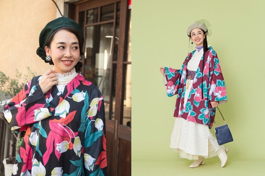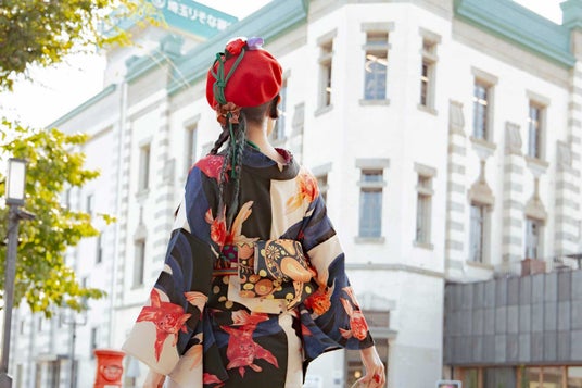着物作家のモダン着物で「推し色コーデ」も。散策後は「足湯」でとろける和スイーツを堪能
