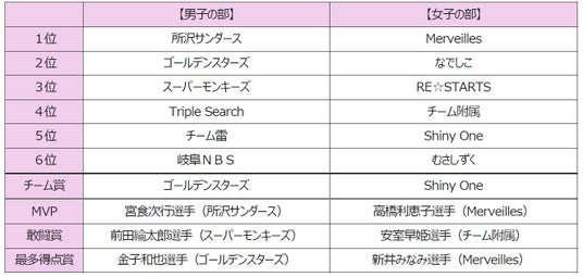 今年新設された「チーム賞」には、男子の部「ゴールデンスターズ」、女子の部「Shiny One(シャイニーワン)」が受賞しました。試合中の声かけや情報共有、困難を乗り越える団結力、キャプテンシーなど、チームの一体感や誠実さを選出理由としております。